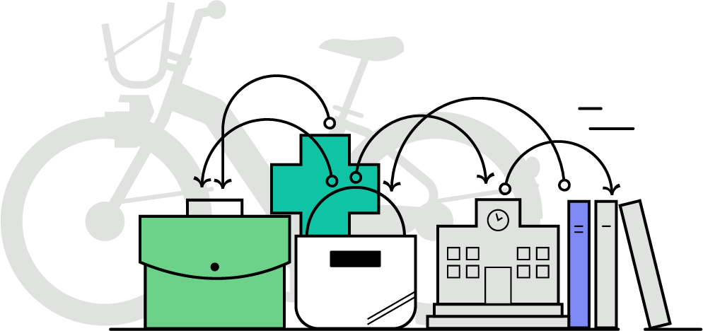 - Connects seamlessly with transit for first- and last-kilometre trips